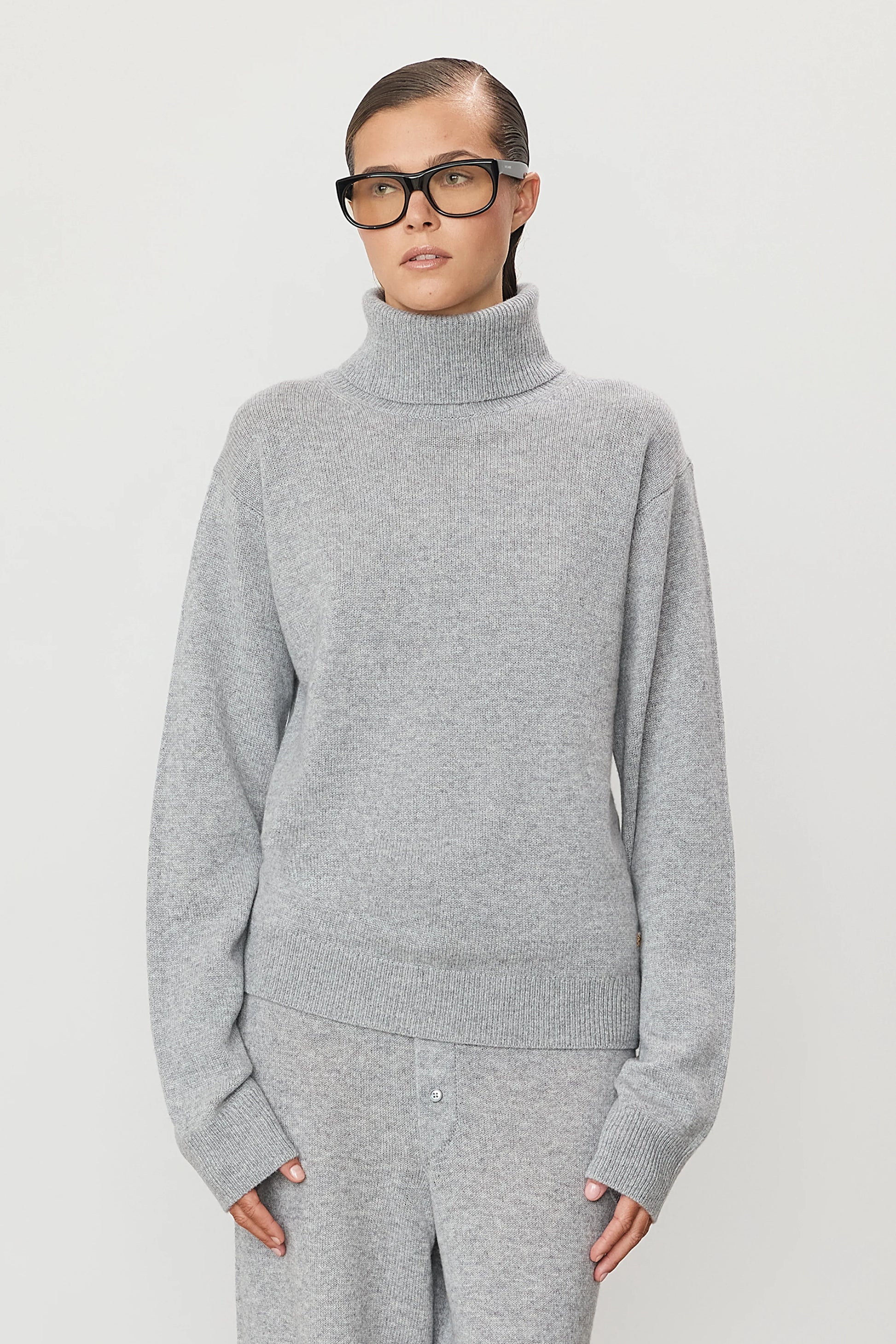 ÉTERNE's Keaton Sweater is crafted from ultra-soft cashmere, offering a relaxed fit and classic turtleneck silhouette—an elevated essential for everyday wear.