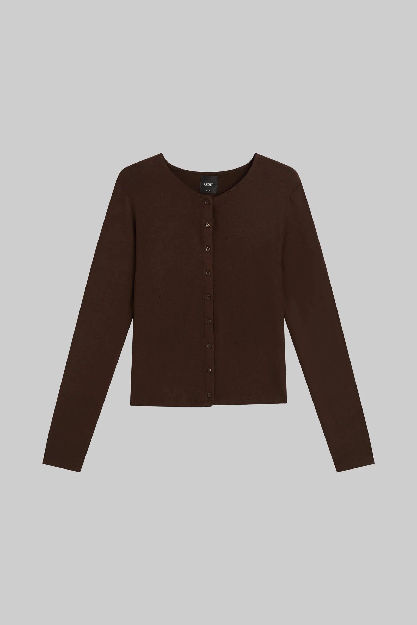 Introducing the Leset Lauren Classic Cardigan—your new go-to layering piece. Crafted from luxuriously soft brushed sweater jersey, this full-length cardigan delivers the same beloved style as its cropped counterpart. The streamlined silhouette features a tonal button front and fitted long sleeves for a polished, versatile look that pairs effortlessly with any outfit. The brushed fabric develops character over time, with natural texture variations that add to its charm. Care for it properly to keep it looking beautiful season after season.