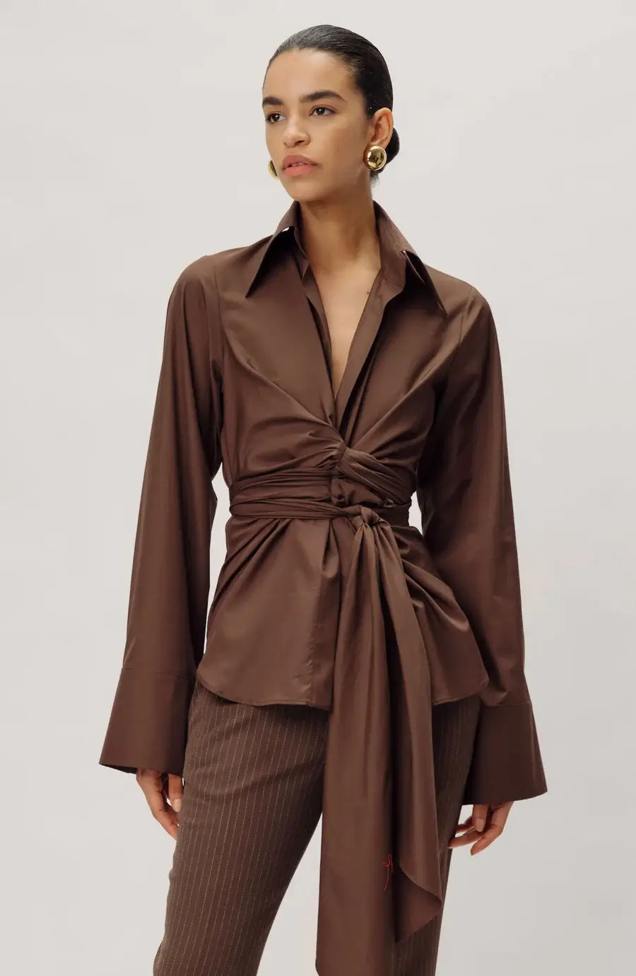 Crafted of crisp poplin, Ronny Kobo's Moscow top flaunts a dynamic tie-waist design. This tailored style features a spread collar and banded cuffs.
