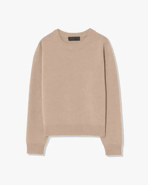 Light to medium weight sweater in cashmere. Straight body. Set in sleeve. Double layer rib at neckline. Fully fashioned along arm hole and shoulder. Wristlet sleeve length. Signature center back cable knit detail.