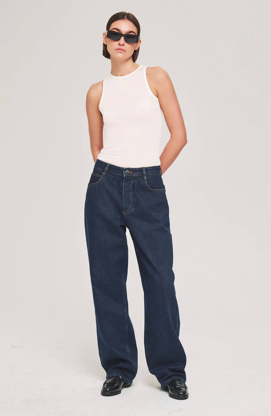 Elevate your denim game with Ronny Kobo's Sade Jean in Dark Wash. Made from washed cotton denim, these high-waisted jeans are perfect for daily wear. With traditional features like pockets and a button closure, you'll never want to take them off. Upgrade your wardrobe with these stylish, versatile jeans.