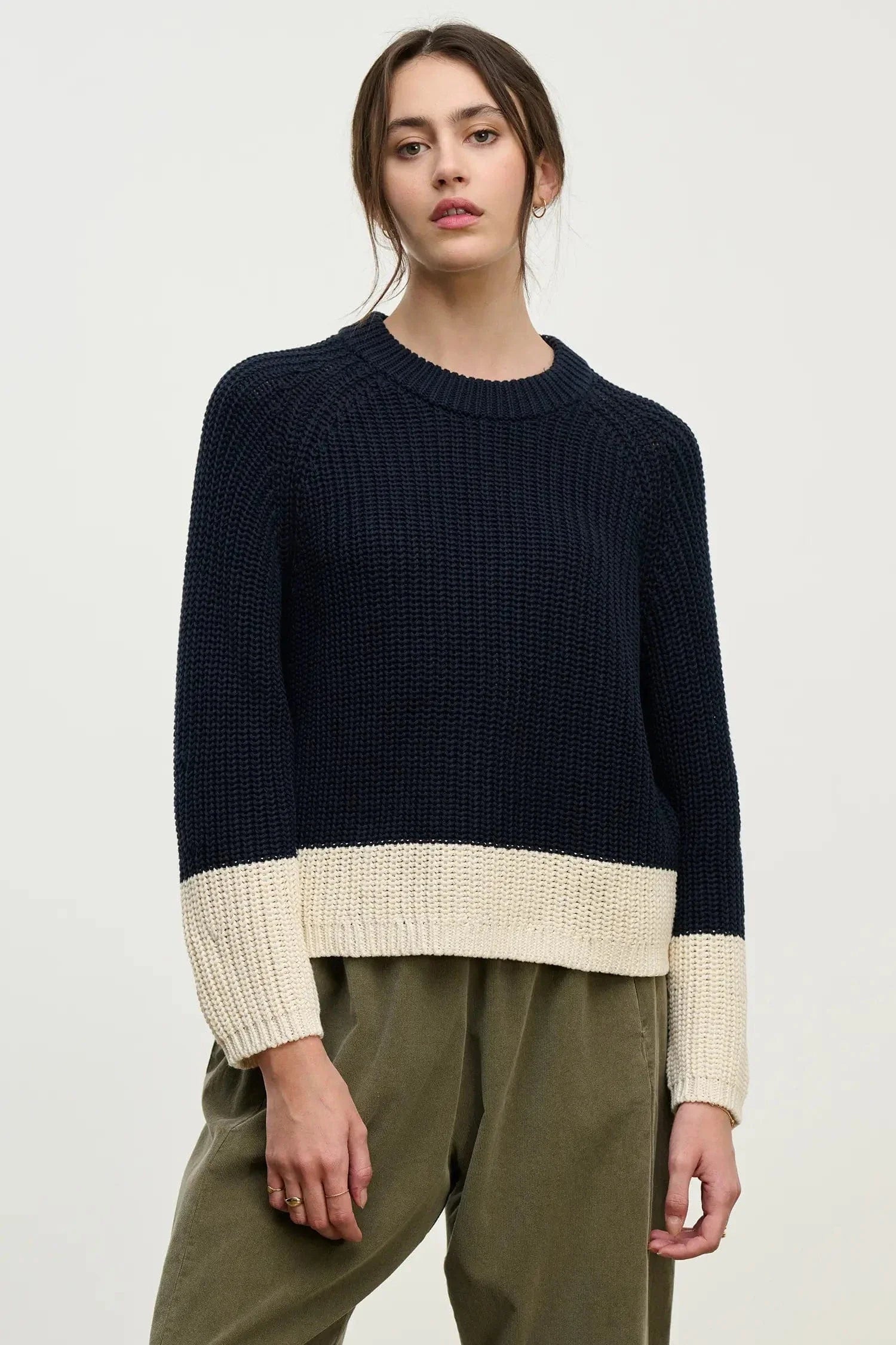 Elevate your casual wardrobe with the Velvet Shay Colorblock Crew in Navy. This stylish crewneck combines rich navy tones with subtle Colorblock detailing for a modern, versatile look. Crafted for comfort and effortless style, it’s perfect for layering or wearing on its own, making it an essential piece for everyday wear.